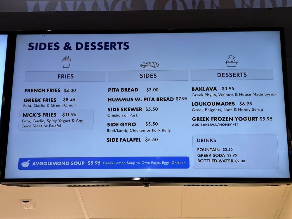 Welcome to Nick The Greek - Roseville, a casual dining experience that brings the vibrant flavors of Greece to Pleasant Grove Blvd. The menu is diverse, catering to a range of tastes with various vegan and vegetarian options available, though the latter are limited. The highlight of your meal can be the signature Greek fries, a delightful twist on a classic, or the sweet indulgence of their froyo topped with a chocolate shell, guaranteed to satisfy any sweet tooth.